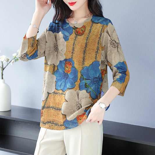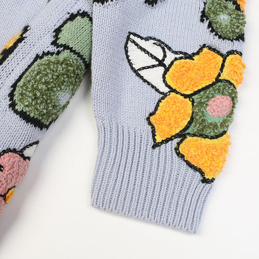 Gestrickte Frauen Floral Pullover Langarm Strickwaren Casual Lose Outwear Weibliche Jacquard Tops