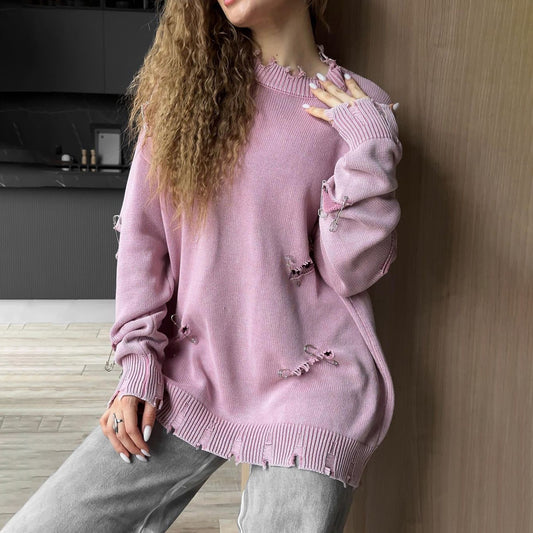 Oversize Idle Style Trendy Fashion Strickwaren Herbst und Winter Freizeit Ripped Pullover für Damen