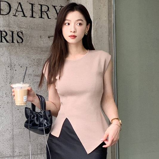 Hochwertiges, taillenenges Strickoberteil aus Eisseide mit schlankmachendem Design für Damen