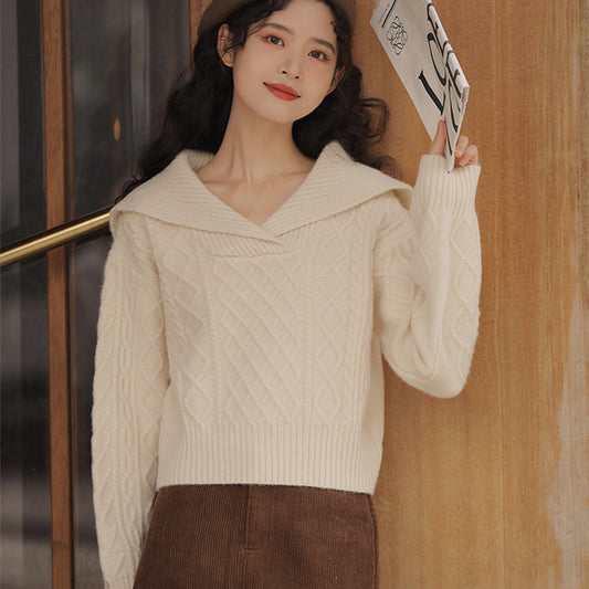 Herbst und Winter Neue einfarbige, lockere und lässige kurze Strickwaren für Damen