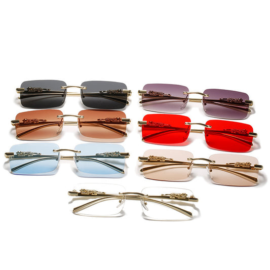Gafas de sol sin marco con ribete de leopardo para hombre y mujer
