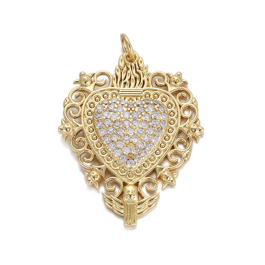 Colgante de amor rojo con gotas de aceite y microincrustaciones de circonita