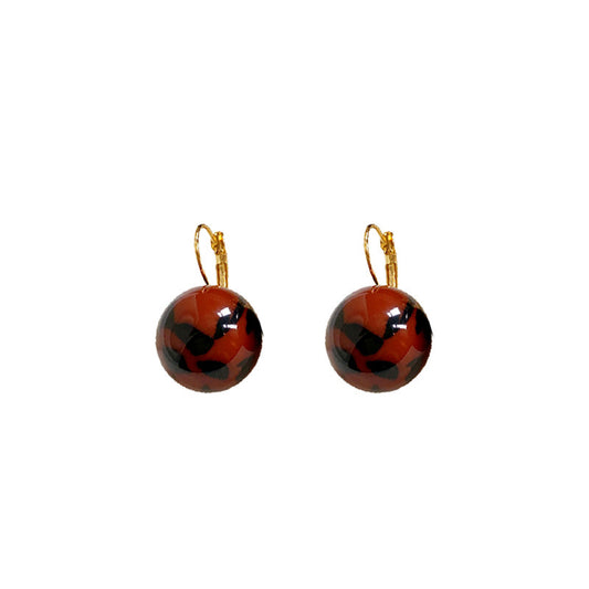 Pendientes vintage únicos con clip de oreja de leopardo redondos de resina
