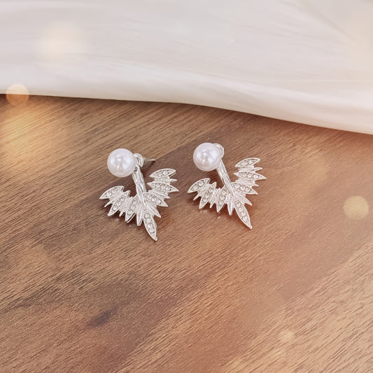 Pendientes de perla con alas colgantes hacia atrás para mujer