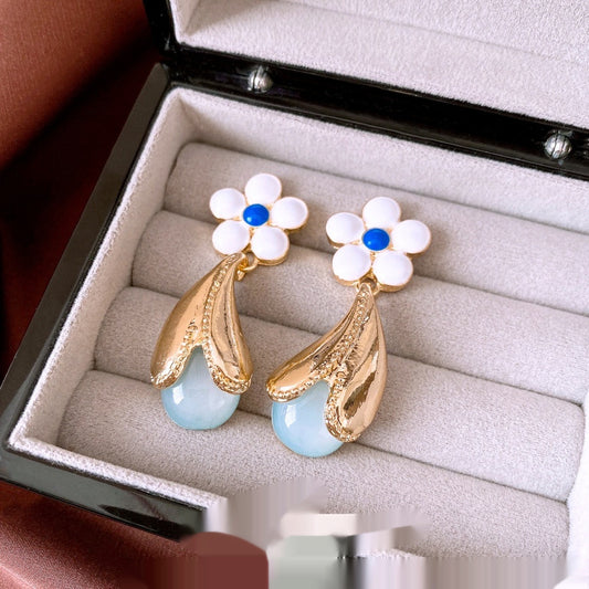 Pendientes de flores de cristal, estilo retro, asequibles, de lujo, para minorías, sencillos y combinables para mujeres.