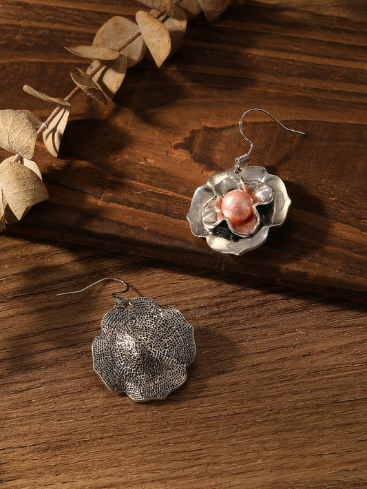 Pendientes de plata antigua con diseño de flores vintage para mujer