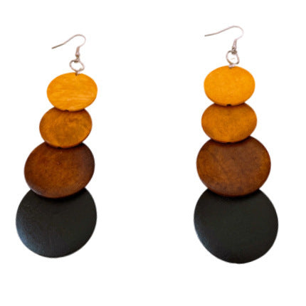 Pendientes de borlas con cuentas redondas de madera de estilo étnico