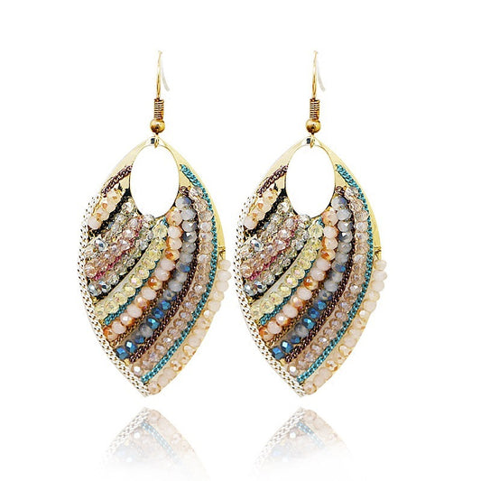 Pendientes elegantes de hojas con cuentas de estilo bohemio exagerado