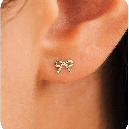 Pendientes de botón con cruz de lazo dorada para mujer