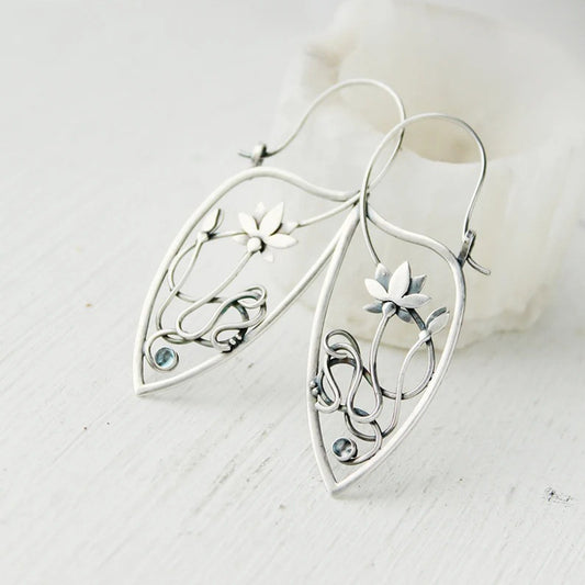 Nuevos pendientes de ópalo con diseño retro de hoja de loto