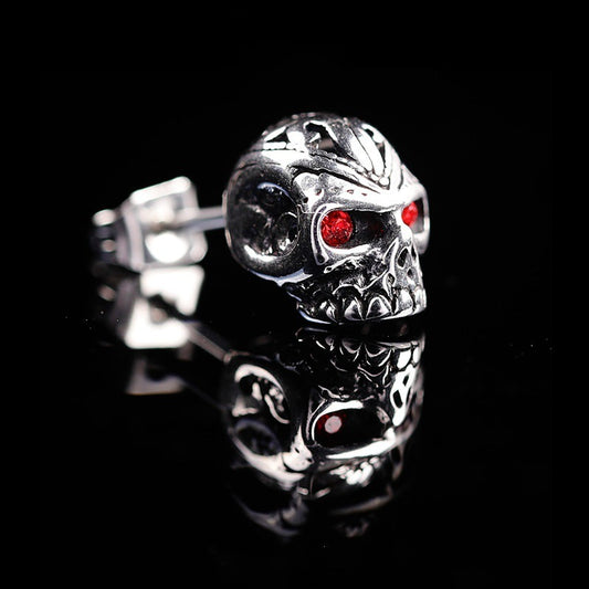 Pendientes retro personalizados con forma de calavera fantasma y ojos rojos para mujer