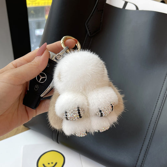 Lindo colgante de llavero de coche con forma de conejito de peluche