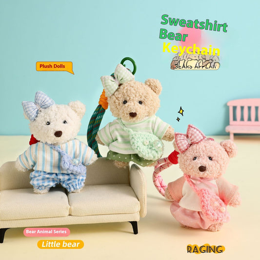 Llavero colgante de coche con forma de oso y sudadera de forro polar original