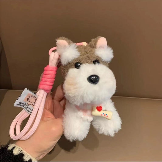 Lindo llavero de cachorro de peluche con colgante de muñeca de juguete