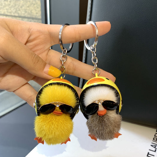 Mini colgante de llavero de coche con forma de pato amarillo de pelo de visón, bonito colgante de mochila escolar de peluche, regalo