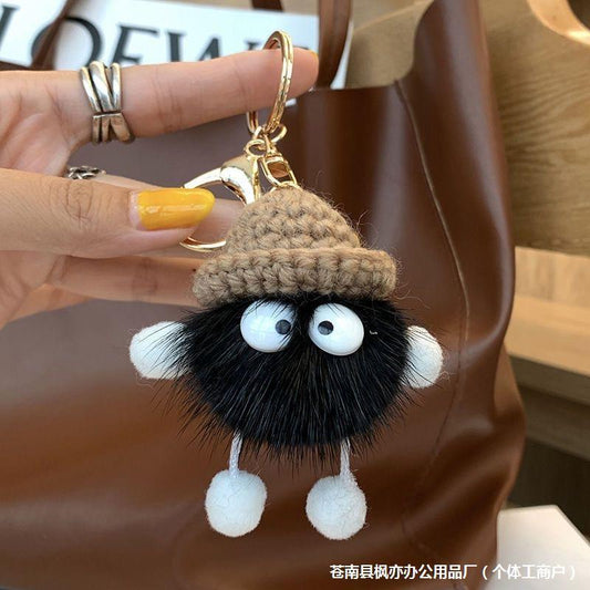 Llavero de carrito de golf de piel de visón y carbón para mujer