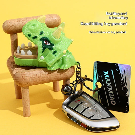Llavero con colgante de dinosaurio para coche con forma de dedo mordedor creativo
