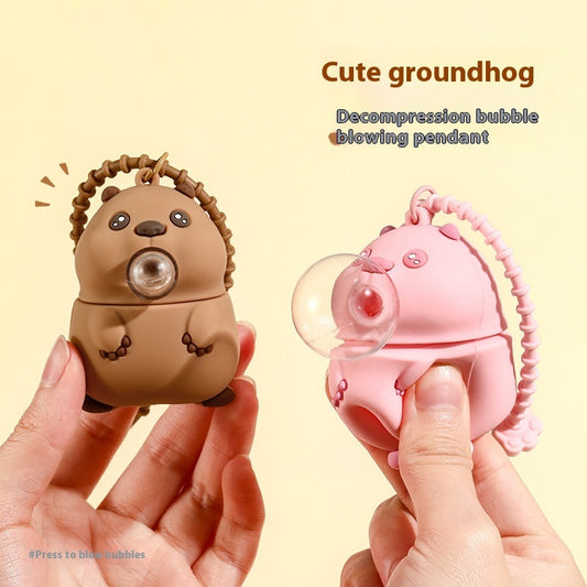 Llavero con forma de marmota para coche, juguete para apretar burbujas