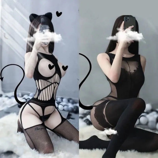 Lencería erótica sexy para adultos con medias transparentes y tentación