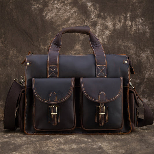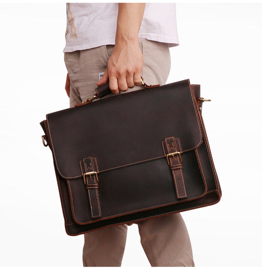Maletín vintage de cuero Crazy Horse para portátil de 13,3 pulgadas para hombre