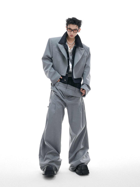 Pantalones de traje a rayas de cintura doble Niche con diseño de costura de mezclilla cruda, pantalones drapeados Sense para hombres y mujeres