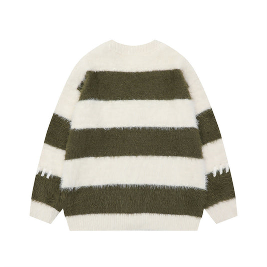 Suéter de punto a rayas de colores contrastantes para hombre, estilo europeo y americano.