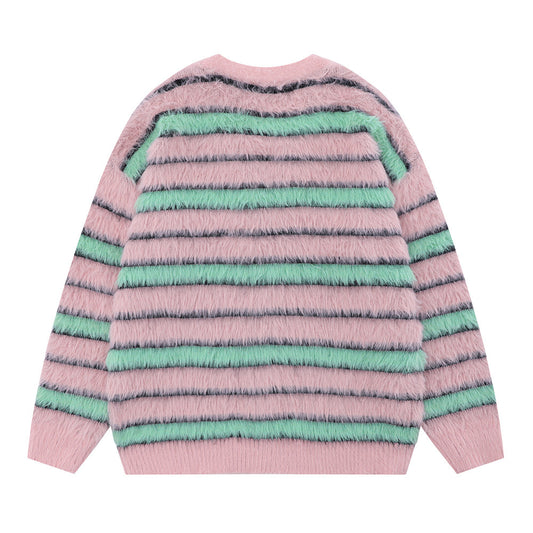 Abrigo tipo suéter con cuello en V y efecto visón a rayas de colores en contraste