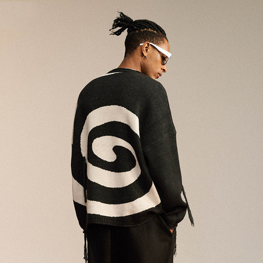 Suéter de cuello redondo sin capucha para hombre, corte holgado y personalidad