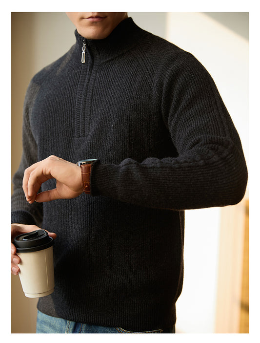 Suéter informal de negocios de cuello medio alto para hombre, tejido básico de cachemira
