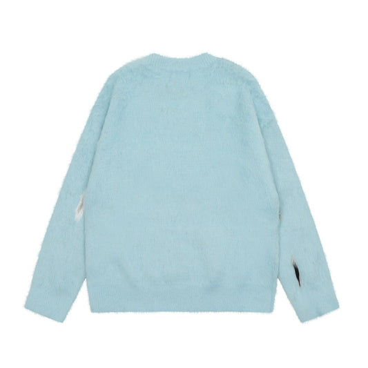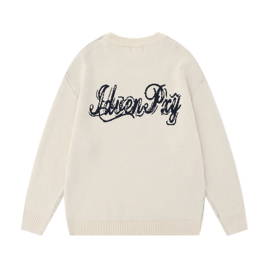 Suéter de cuello redondo con letras de felpa para hombre y mujer, suéter holgado a juego.