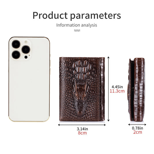 Cartera electrónica Cheng ultrafina de cuero genuino antirrobo con cierre deslizante