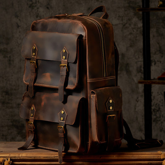 Mochila de cuero de caballo hecha a mano