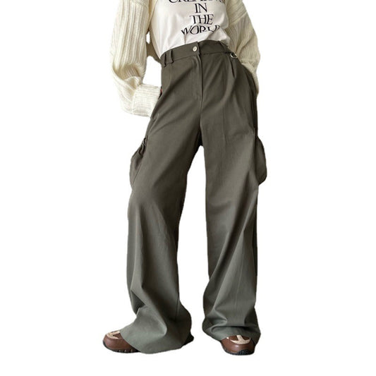 Pantalones de trabajo de cintura baja con cordón y bolsillos tridimensionales para mujer