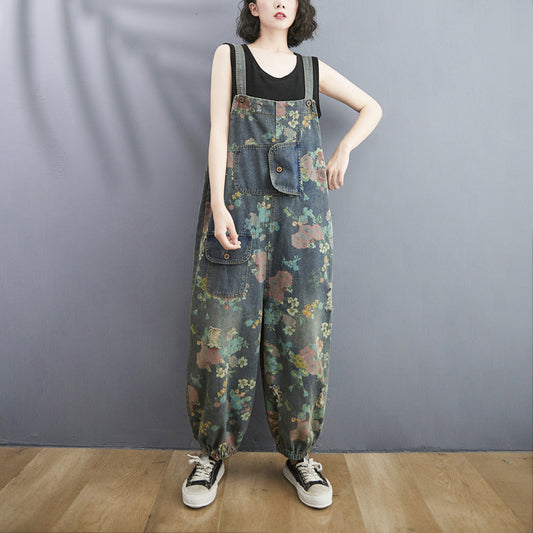 Pantalones vaqueros de una pieza holgados y adelgazantes con tirantes grandes de estilo occidental para mujer