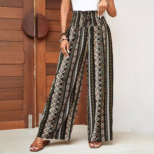 Pantalones anchos y holgados con cintura alta y estampados para mujer