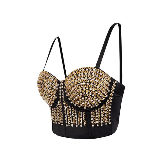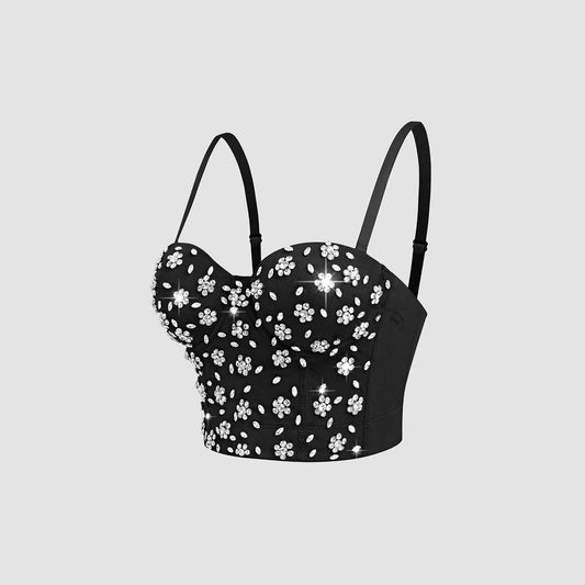 Bralette sexy de espiga con adornos de diamantes de imitación y cuentas
