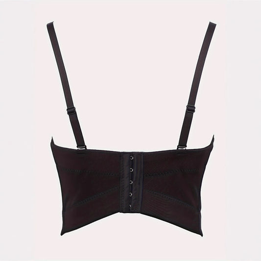 Camisola sexy tipo bralette con cadena y diseño de varillas que deja al descubierto la cintura.