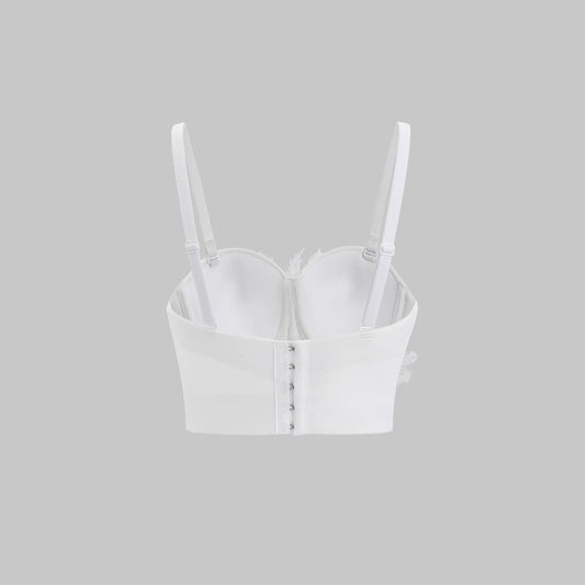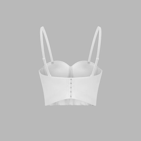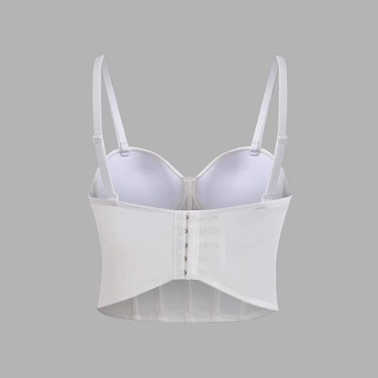 Camisola sexy blanca sin tirantes para mujer con moldeador de cuentas desgastadas