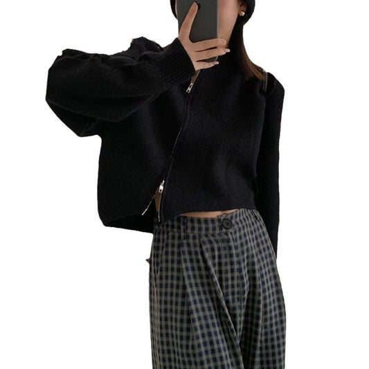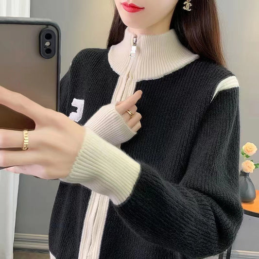 Nuevo suéter de punto de cuello alto suelto de estilo coreano, cárdigan con cremallera para mujer