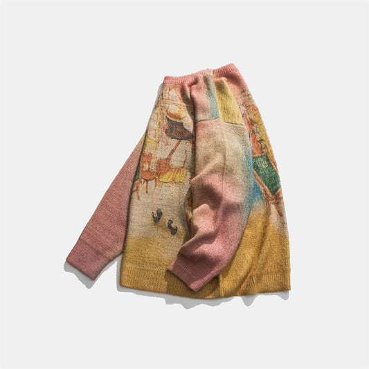 Suéter de cuello redondo con estampado de animales en bloques de color, nuevo y moderno de Japón