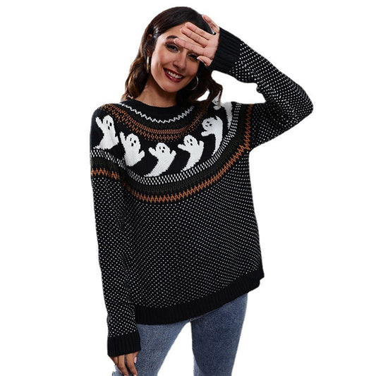Suéter de punto para mujer, cómodo y casual, estampado, de manga larga y cuello redondo