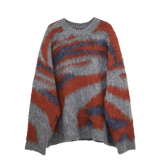 Suéter de punto de mohair retro holgado de invierno con rayas de colores contrastantes