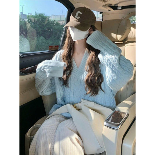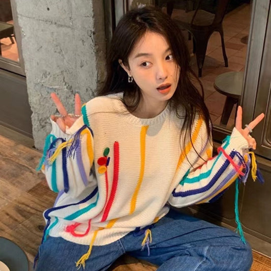 Suéter informal holgado de estilo juvenil con cárdigan bordado de punto europeo y americano.