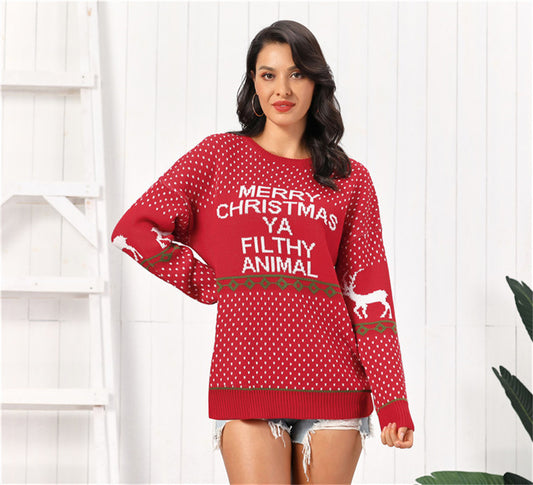 Suéter de brocado de cuello redondo para mujer, suelto, de otoño e invierno, con diseño de alce navideño