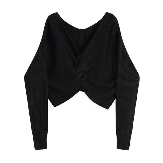 Suéter de manga larga con cuello en V para mujer, prenda de punto delantera y trasera