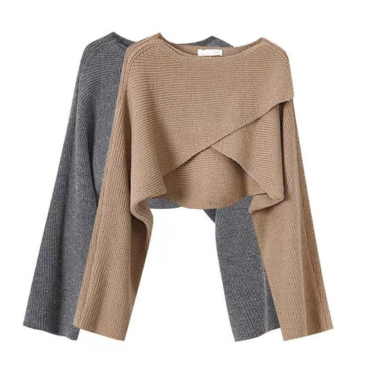 Suéter Inverness de punto de manga larga con cuello cruzado para mujer