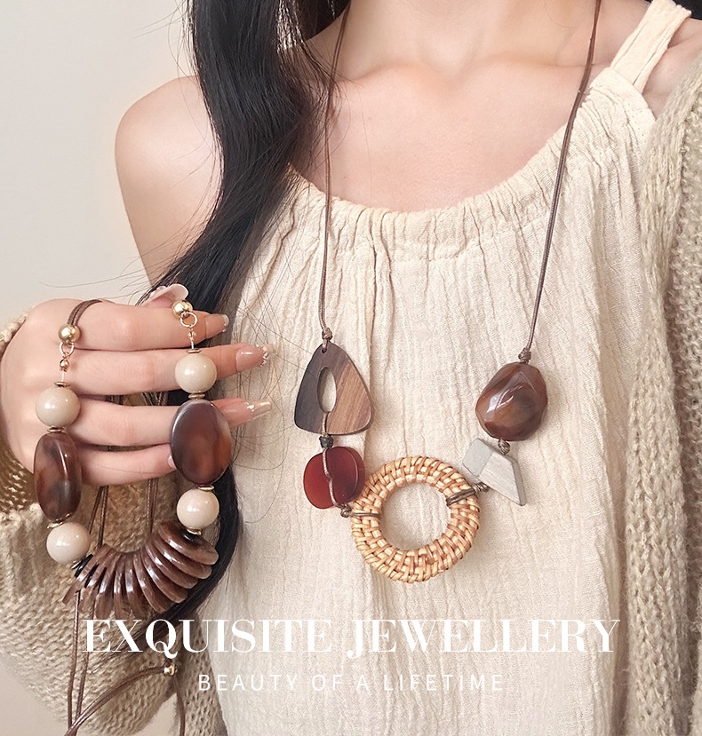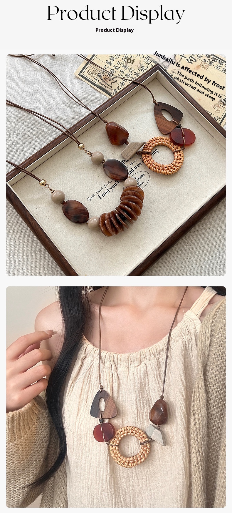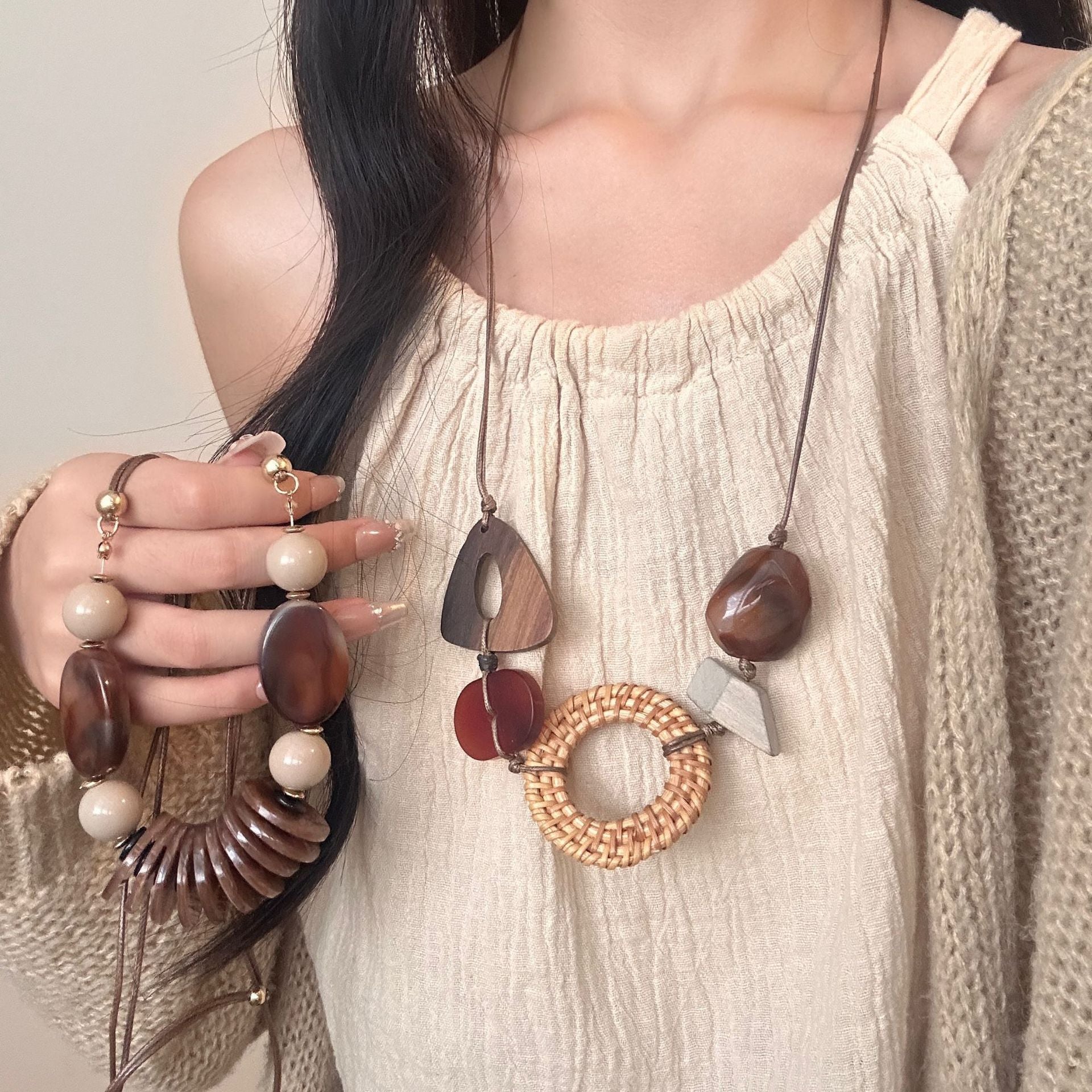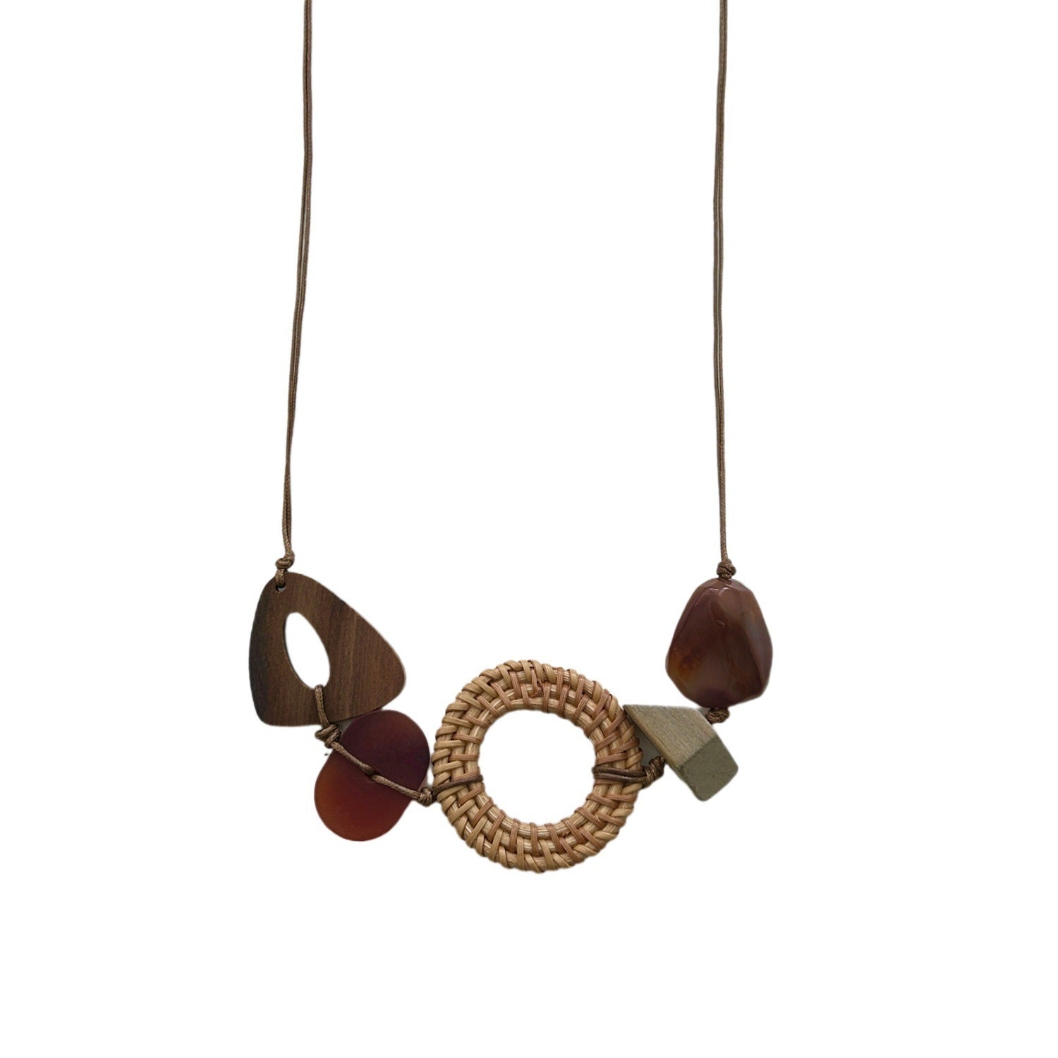Color: collar original con forma, collar geométrico de madera hecho a mano.