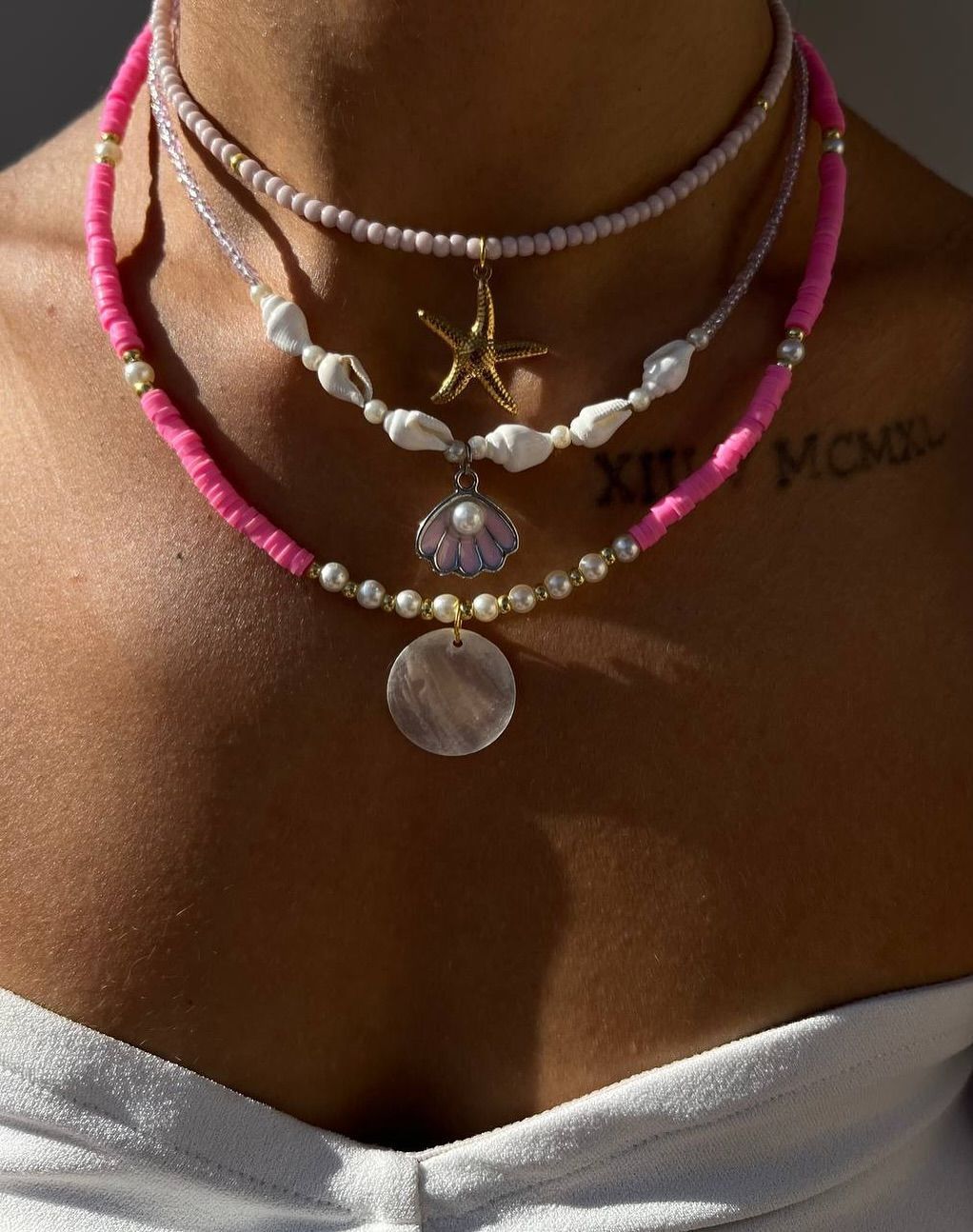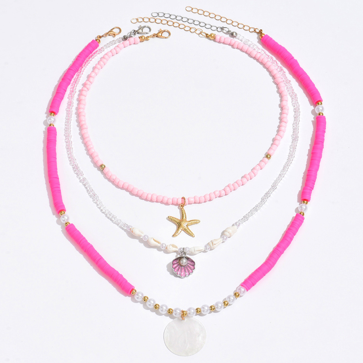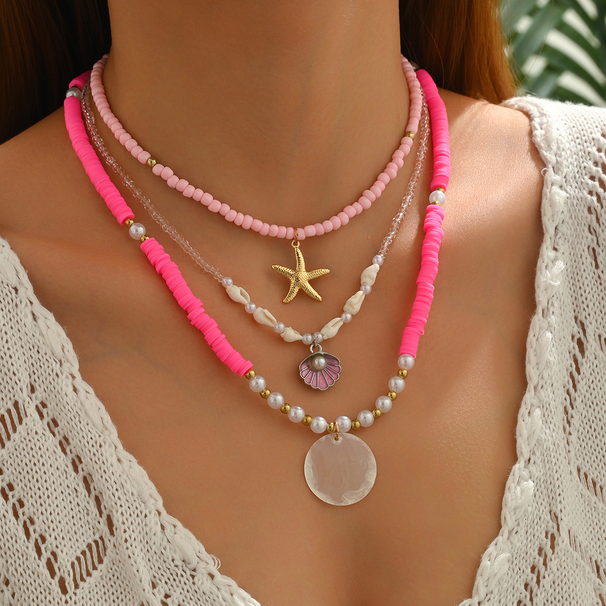 Collar de cuentas de arcilla polimérica para mujer, concha multicapa, cadena doble para clavícula