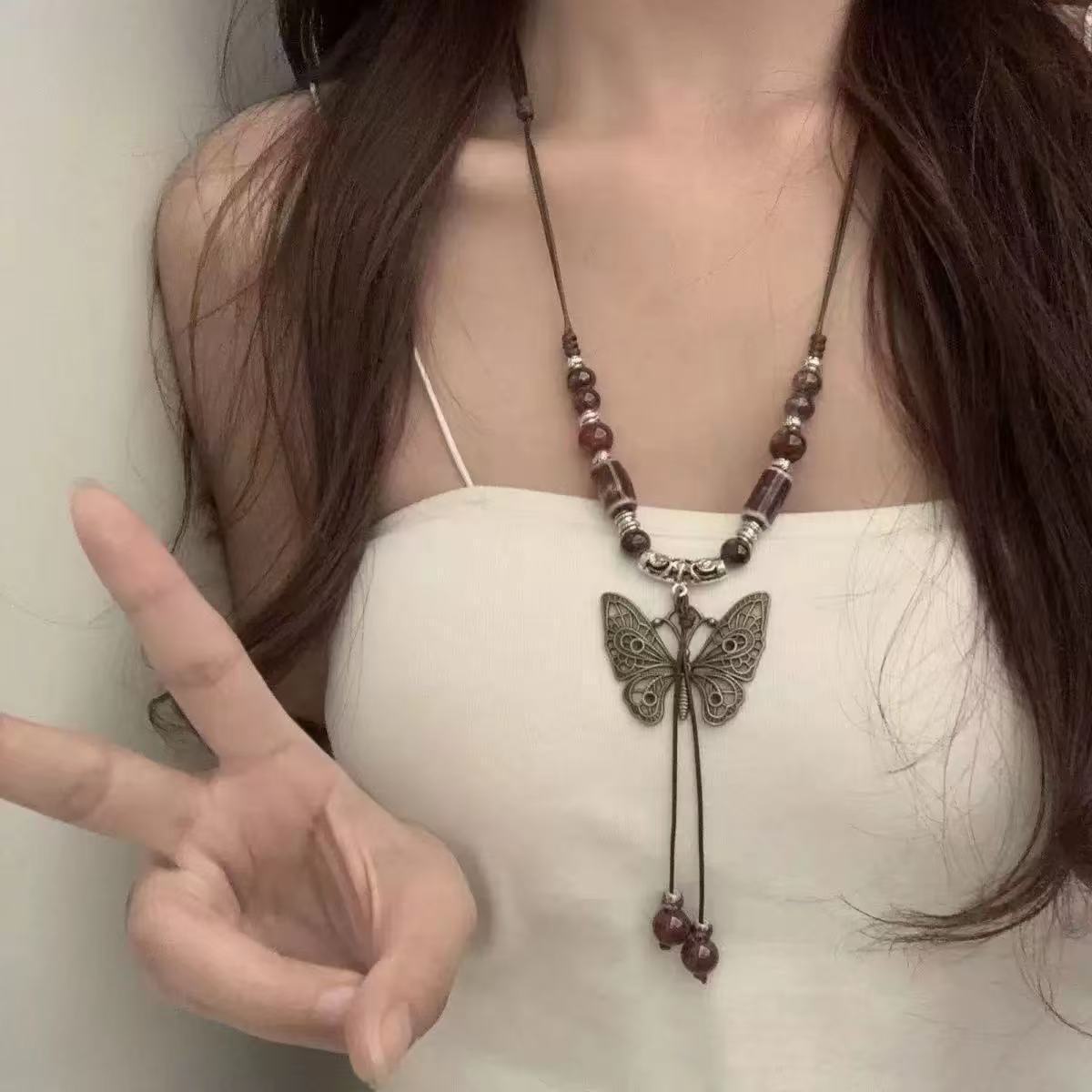Color: collar de cerámica con mariposa, hermoso colgante de mariposa vacío, collar largo con mariposa antigua, collar largo con mariposa azul, collar largo con mariposa blanca, collar largo con anillo de cerámica, collar de cerámica Meiling, collar de cerámica de estilo nacional, collar de cerámica con mariposa yandai, collar de cerámica con corazón de amor, collar con borlas, collar XINGX de color claro, collar XINGX de color oscuro, collar de camelia, collar de cerámica con estrella de cinco puntas
