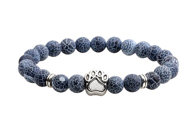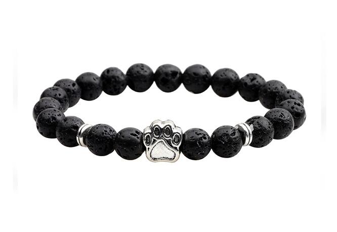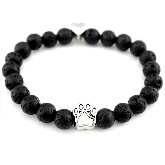 Dogs Cat Paw Natural Stone Lava Beads Bracelets Elastic Rope Fashion Men Women Unisex Wristband Trendy Jewelry